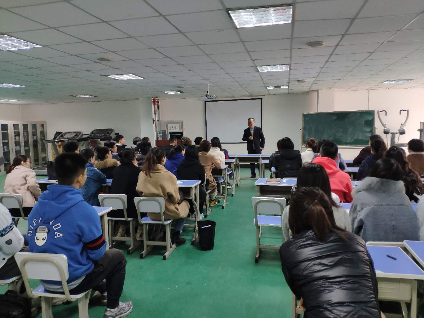 裘鹏经理首先对研究生表达了寄语,并对研究生提出六点希望。希望研究生熟悉环境,特别是制度环境,了解公司制度,规范自身行为;希望作为体育人在学习工作生活家庭等各方面要时时刻刻注意仪式感;鼓励研究生敢于挑战自我,不要局限自己,勇于承担失败,做更有层次和正能量的人;希望研究生学会分享,在大数据环境下决不能单打独斗,要互相学习,互相帮助,互相支撑;希望各位同学定位好自己的位置,作为体育人要真才实学,做全能型人才,及时制定计划,努力提升自我;希望研究生要学会感恩,对父母、老师、同学怀着一颗感恩的心,用实际行动予以报答。
