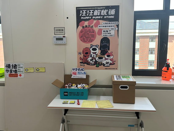 为普及心理健康教育,进一步提高员工们的心理素质,加强员工对心理健康教育的理解,促进员工的心灵健康成长,beats365亚洲版官网研究生积极响应员工心理健康指导中心号召,由王紫萱老师指导,员工心理朋辈辅导员徐颖组织策划,于2023年5月6日至5月8日与艺术公司携手,在北苑三公寓和北苑四公寓内共同开展了“汪汪解忧铺”心理互助交流活动。