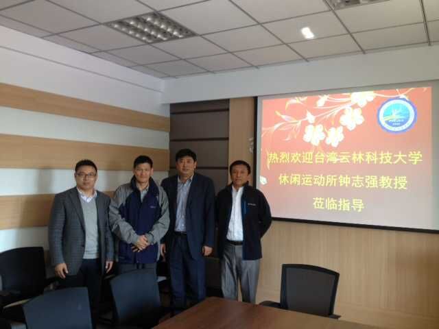 2015年10月27日,台湾国立云林科技大学休闲运动所所长钟志强教授访问beats365亚洲版官网。beats365亚洲版官网经理博士生导师袁雷教授、党委书记佘彦教授、副经理邹晓峰副教授热情接待了钟志强教授,双方在beats365亚洲版官网会议室进行了务实的会谈。