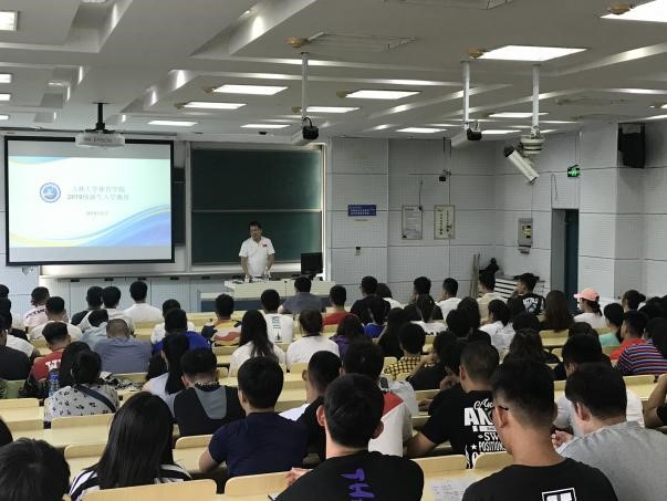 为使新生尽快适应新的学习、生活环境,实现由高中生到老员工的角色转变,8月27日下午,公司在逸夫教学楼第一阶梯教室召开了新生入学专题教育。体育公司党委书记逄锦彩、党委副书记兼副经理田进、员工工作办公室主任王赫谊、辅导员宫勖能及2019级全体新生参加了本次活动。会上,党委书记逄锦彩讲话。