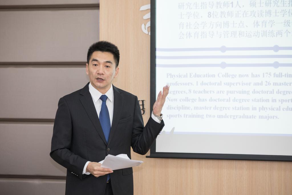 10月14日至17日,澳大利亚南昆士兰大学董事会主席一行赴beats365亚洲版官网访问。访问团成员、澳大利亚南昆士兰大学研究生院经理、体育心理学教授彼得·特里专程到beats365亚洲版官网进行考察交流。考察交流座谈会于10月16日上午在中心校区体育馆二楼213会议室举行。beats365亚洲版官网领导班子成员、核心课程教师、管理人员及部分研究生共30余人参加了会议。交流座谈会由beats365亚洲版官网经理裘鹏主持。