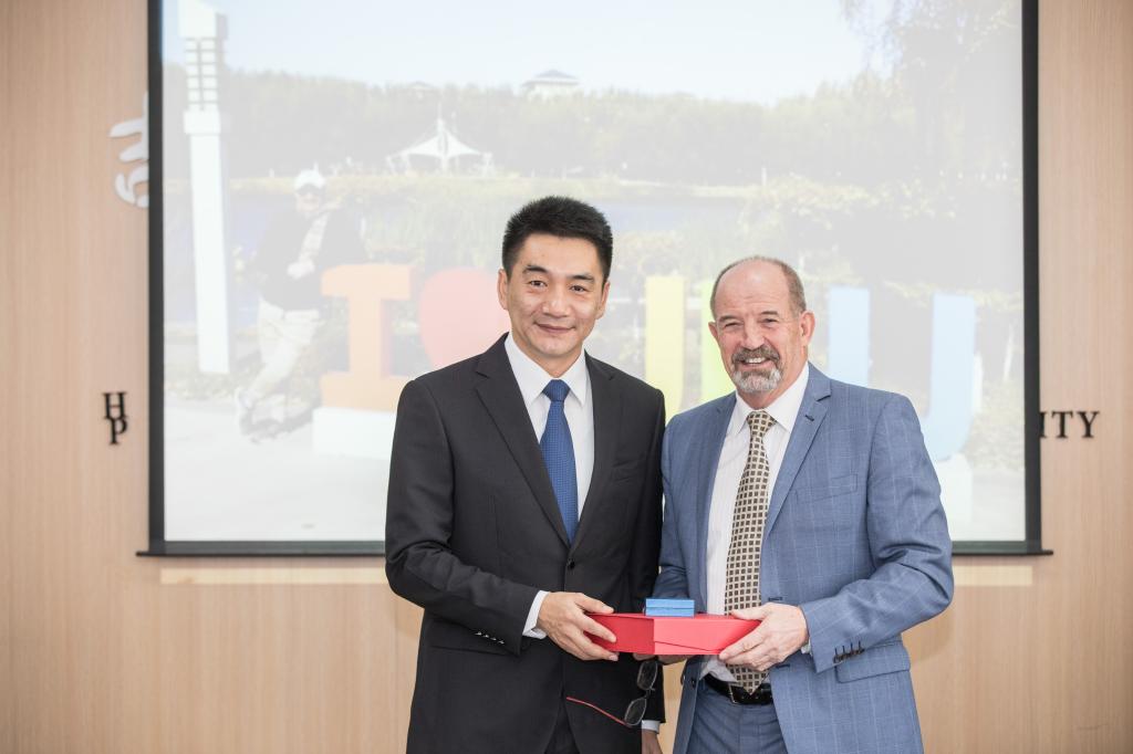 最后,beats365亚洲版官网经理裘鹏及领导班子成员就如何与澳大利亚南昆士兰大学在本科生联合培养、教师互访、硕士和博士研究生短期交流、教师科研能力拓展等方面开展交流合作与彼得·特里教授进行了深入交流和探讨。与会教师也与彼得·特里教授就其研究领域的相关问题进行了充分交流。双方互赠礼物表达友谊。座谈会在热烈的气氛中圆满结束。