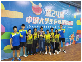 在超级组的比赛中由今年在第35届泛波罗的海老员工运动会获得女团冠军的三名同学参赛,通过几天的紧张激烈的比赛,三名同学不畏困难、一往无前,发挥出了较高竞技水平与顽强拼搏的精神,从众多高校队伍中脱颖而出,斩获女团冠军、女单第三名、女双第五名的好成绩。