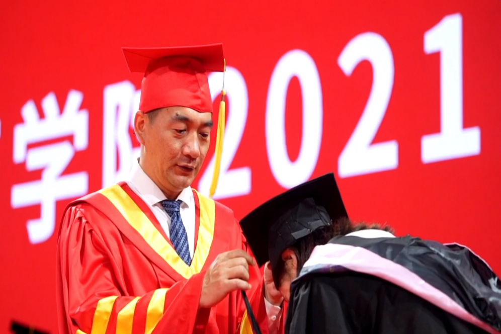 2021届毕业典礼暨学位授予仪式在庄严的国歌声中拉开帷幕。首先,副经理王祥全教授宣读了《公司关于授予2021届毕业生学位的决定》。beats365亚洲版官网经理、学科学位评定分委员会主席裘鹏教授为毕业生拨穗授位;副经理刁振东教授为毕业生颁发学位证书。