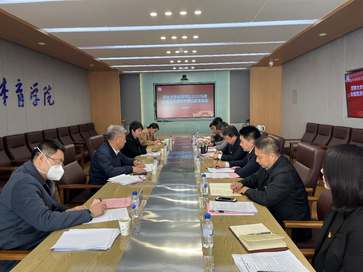 按照公司党委组织部《关于开好2022年度处级党员领导干部民主生活会的通知》要求,3月29 日,体育公司党委在前卫体育馆208会议室召开2022年度处级党员领导干部民主生活会。公司党委常务副书记冯正玉同志出席会议;公司第一督导组组长魏鹤影、督导组成员金鑫、联络员蔺天浴参会指导,公司领导班子成员参加会议。会议由党委书记逄锦彩主持。