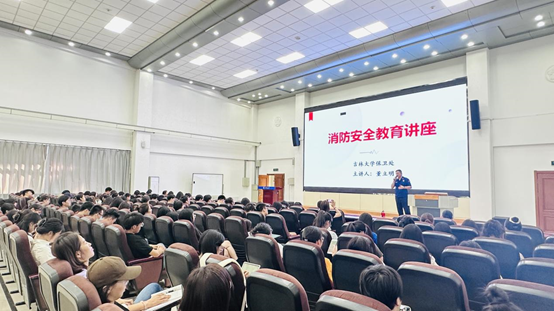 随后,由保卫处董立明老师进行消防安全讲座。他表示,火灾的预防对于同学们的生命和财产安全有重要意义。他向同学们介绍了消防安全制度和灭火器材的使用方法,展示了火灾现场图片和视频案例,强调员工要规范使用电器和高度重视消防安全问题,提升防范火灾的能力。