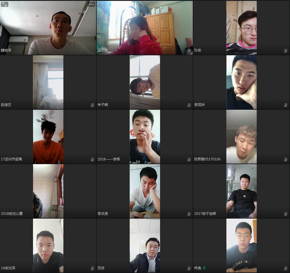 之后,田进副书记对各班班长反映的问题做出解释,并对班干部今后的工作方向提出三点要求:一是要关注校内通知,及时将信息转告给班里同学;二是要关注班里同学在学习和生活上的动向,及时将信息反馈给老师;三是要召开班级线上会议,督促同学们严格要求自己的学习和生活,严格执行线上教学考勤及每日健康打卡工作,并在疫情期间做好自身安全防护。