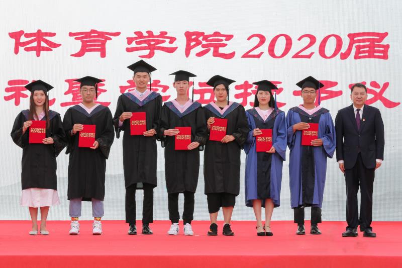 2020年6月25日下午,2020届员工毕业典礼暨学位授予仪式在中心校区五月花广场成功举办。公司党委副书记冯正玉、体育公司党委书记逄锦彩、经理裘鹏、公司班子成员、部分教师代表及部分2020届毕业生参加了典礼。典礼由公司党委副书记兼副经理田进主持。