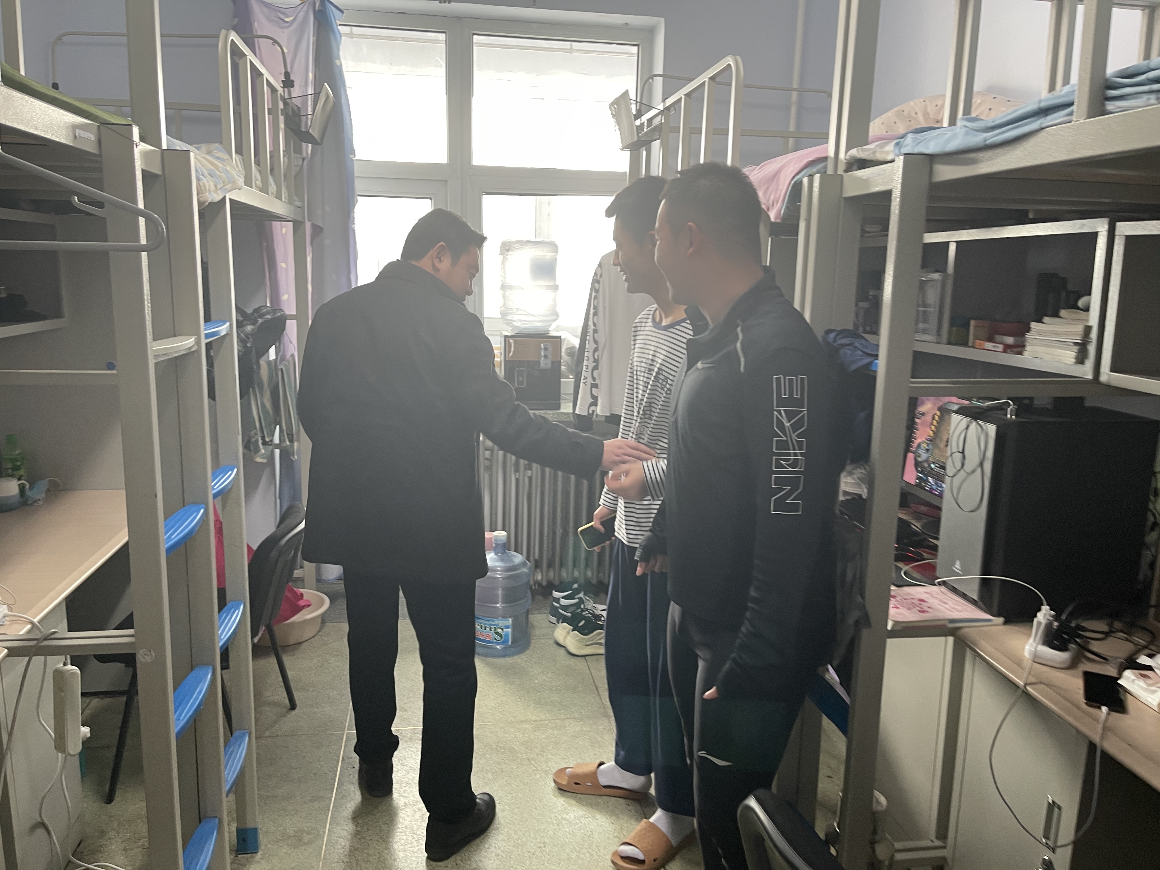 为迎接同学们顺利返校,做好返校后的寝室安全防疫工作。2021年3月18日中午,公司党委副书记兼副经理田进、全体辅导员带领员工干部对所有本科生寝室进行了新学期卫生安全大检查。