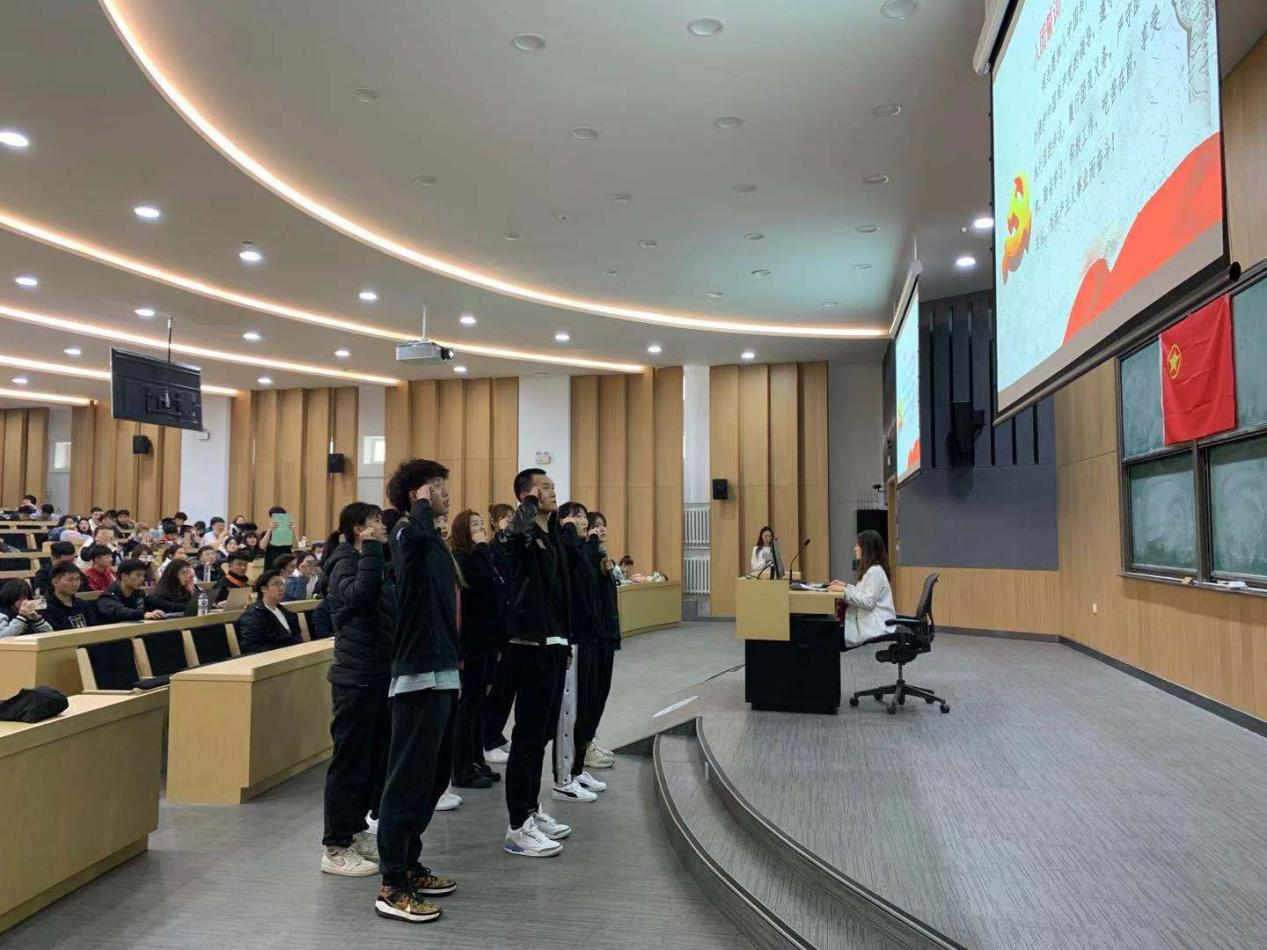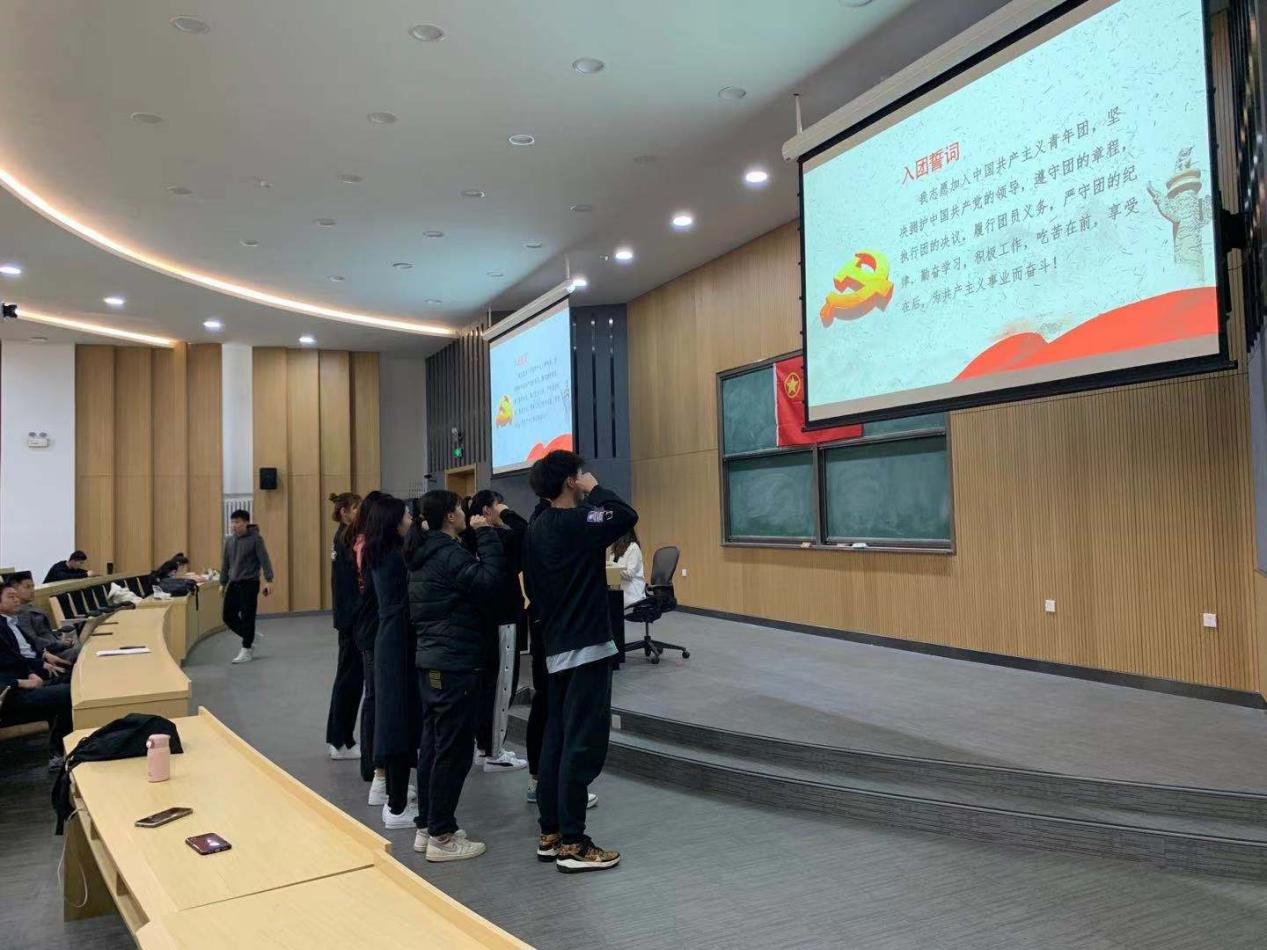 入团宣誓仪式开始,团学干部孙静涵同学带领全体新团员以最宏亮的声音,崭新饱满的精神面貌面对团旗进行了庄严宣誓,向团组织表明决心。现场的通过重温誓词,牢记团的誓言,增强为共产主义奋斗的信念宣誓仪式结束后,同学们从这一标志性的时刻开始,更好地发挥先锋模范带头作用,铭记在团旗下许下的誓言,努力学习,不畏艰难。