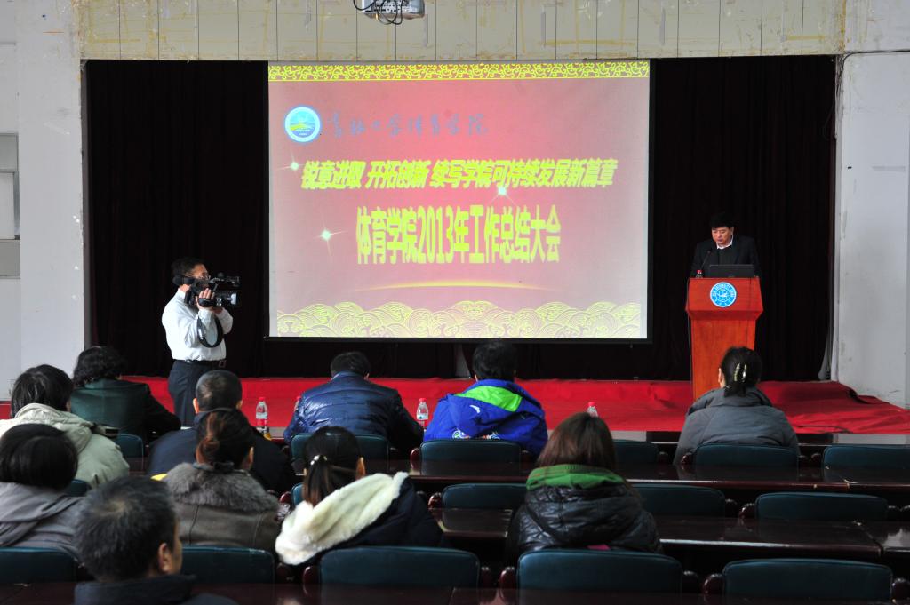 在总结大会上,经理袁雷教授做了2013年度工作总结报告。袁雷经理全面回顾了公司2013年的各项工作及所取得的成绩,他从团队建设、人才培养、科研工作、团队队伍建设、对外交流、群众体育以及竞技体育开展情况、财务工作等方面向公司领导和全院教职员工做了详细汇报,他深刻分析并明确指出了公司发展面临的问题和挑战,并要求全院师生充分认识当前公司存在的不足,时刻保持危机意识,艰苦奋斗。同时他对2014年的公司工作提出了要求和目标。