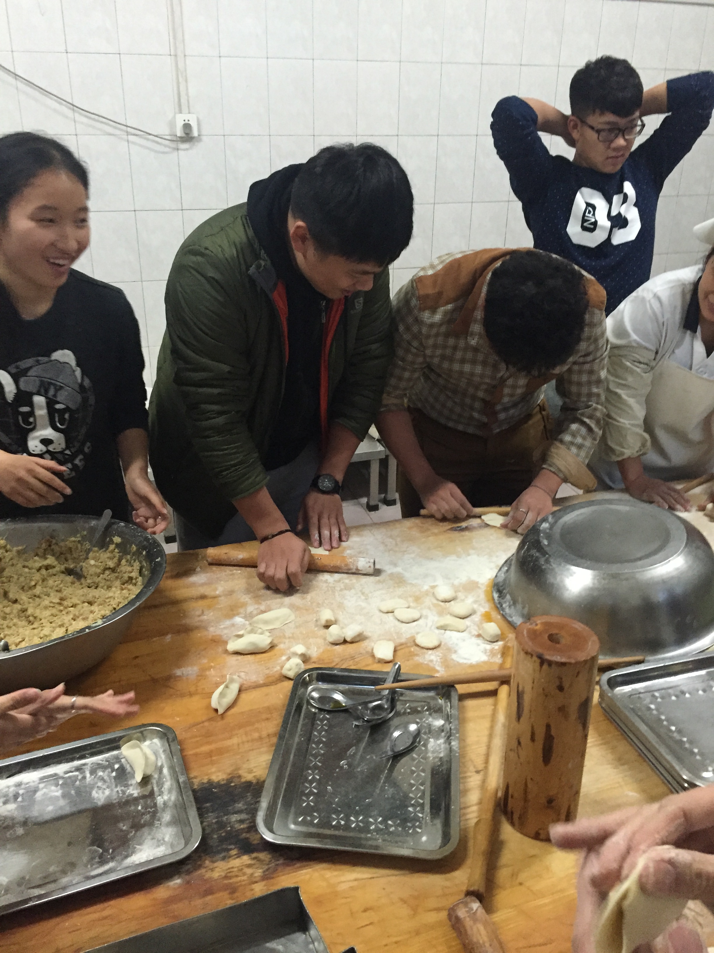 随着同学们的陆续到来,活动正式开始。面对着面团和馅料,同学们各显神通马上热火朝天的投入活动之中。而一些从未尝试过包饺子的同学也在食堂阿姨的指导下跃跃欲试。尽管饺子形态各异,却包含着同学们的暖暖情意。活动进行到一半小时,辅导员田轲老师来到后厨与同学们一起擀面皮、包饺子。大家在老师的带领下,积极性更加高涨,像在家里一样有说有笑地包着饺子,气氛十分融洽。经过一个半小时的包饺子后,同学们终于品尝到了辛勤劳动的成果。同学们纷纷表示这是他们吃过最好吃的一顿饺子。